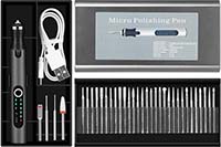 This tool comes with lots of bits, mostly diamond, WHICH WILL damage enamel if used on it. The polishing tools I recommend are called 3M Radial Bristle Discs*. You do not need to buy a kit, as you only need certain colors. Mandrels to put these on will also be needed. The 3/4" size is good for your needs on buttons. You can use the yellow (80 grit), red (220 grit), blue (400 grit), and light green (1 micron). More than one head can be put on the madrel at one time, thus see what works best for you.