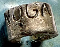 Carolyn Noga's write up is on page 102 of my book. This write up does not talk about her backmark. Well, here is an example - she frequently signed her shanks...