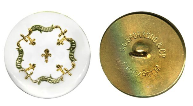 Their vintage pieces were backmarked either Sporrong & Co Stockholm, Sporrong Stockholm or C. C. Sporrong & Co Stoocholm. They are known for their Scandinavian motifs on pins buttons, cuff links and medals, frequently using 3 crowns.