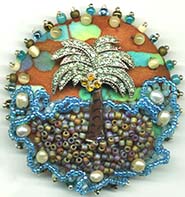 Inquires welcomed and are always inspiring. Ex: You can buy an object (like a cat brooch) and email me to make a beaded button with it. I can work with almost anything you can get. That's part of the challenge for me. But the size should be no more than 2.25". Commissions have their own web page. Here's recent one I created.