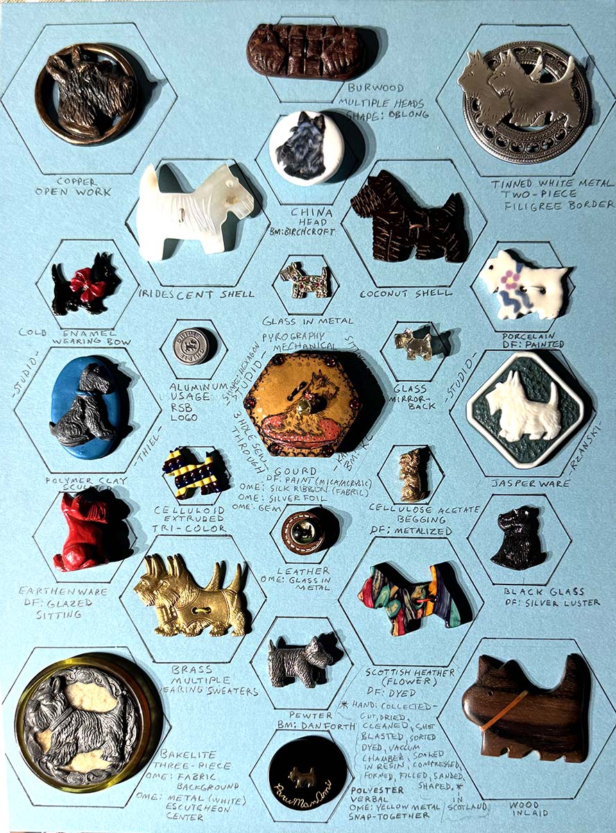 This button is the 1st in a series (#2384), which is called AKC Beauties, of pewter dogs. I prefer to make these custom so you can choose the dog you like (I would buy it and make the button). These pewter images are signed by the artist. |
