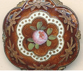 The book discusses ways to fix the enamel on a button, but here is a way to polish up the metal without damaging the enamel itself.