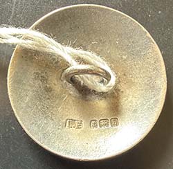 Lawrence Emanuel was an English enamelist/jeweler, working in the late 1800s until the mid 1930s. In 1886, he registered his first mark at the Birmingham Assay Office. In 1887, he registered in London. His mark is LE as shown below on the back of one of his buttons. Emanuel worked in the heart of Birmingham at 14 Warstone Parade East. Besides jewelry he created other items like buttons, scent bottles, pillboxes and buckles. He frequently worked in Art Nouveaux and Arts and Crafts styles and primarily used enamel over sterling silver, not fine silver, as many in England do, even to this day. Emanuel was partial to stylized floral designs as he was influenced by Charles Rennie Mackintosh.