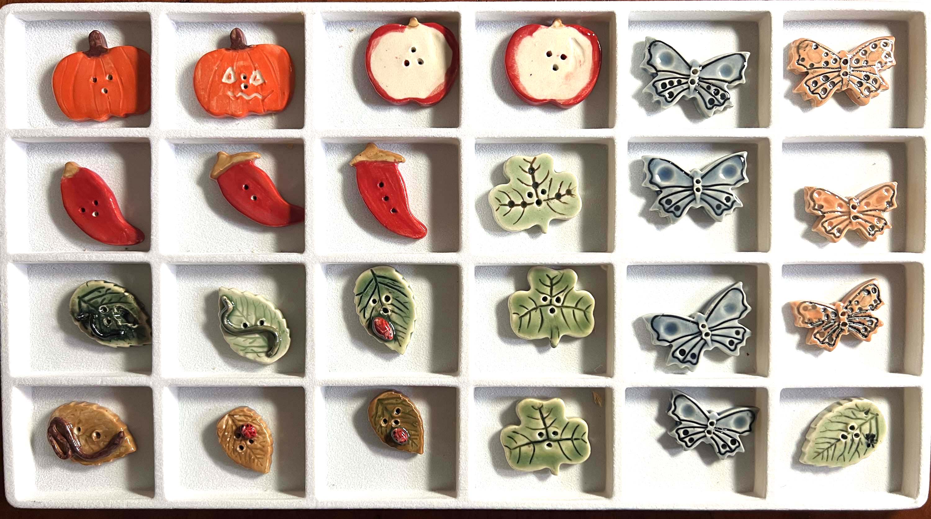 Diane has started ceramics work as a new hobby and decided to make some sew through buttons. Lucky collectors! Note - dimensions listed are approximate.
